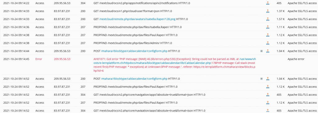 Can you have a look at the error log again? And if you create test-accounts for me in your owncloud and nextcloud, I will try to configure those in my mahara-instance to see if I can reproduce the error.