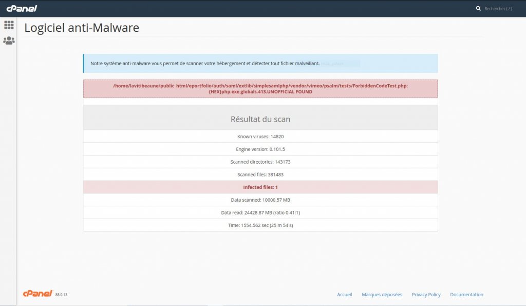Virus found on CPANEL malware search