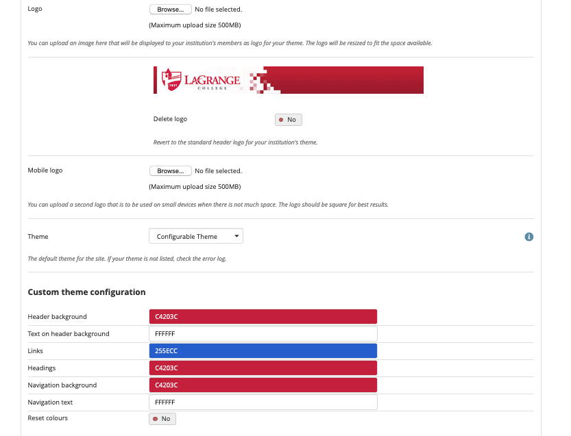 Recently, with those same privileges, we've found that we cannot apply an institutional theme to a new page or collection. Even when we select the configured theme, the default color scheme appears. Should we reconfigure something?