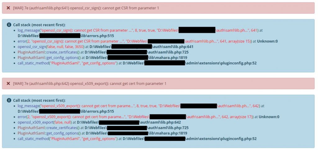 [WAR] 98 (auth\saml\lib.php:641) openssl_csr_sign(): cannot get CSR from parameter 1