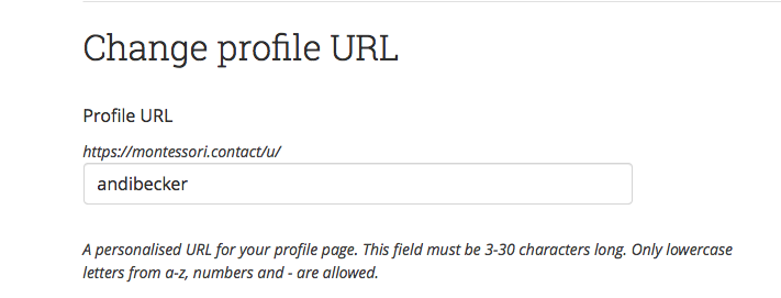 but what is needed is that it actually stays on the clean URL format https :/ /montessori.contact/u/andibecker