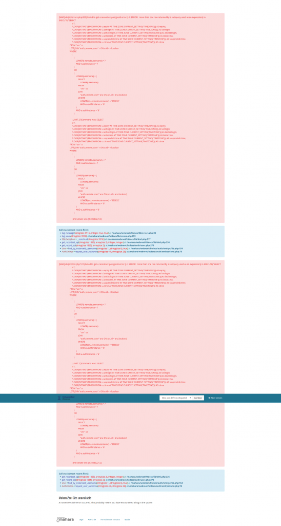 Message "Site unavailable A nonrecoverable error occurred. This probably means you have encountered a bug in the system"