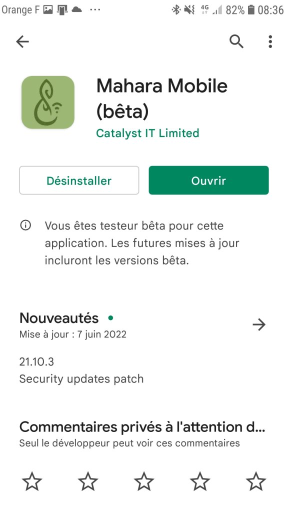 Hi, i'm trying to use Mahara Mobile on my Samsung Galaxy S7 (Android 8) but when i take a photo and after that trying to upload it nothing happens. I see the process running and after a time it stops. The photo is still in the upload queue and nothing in the portfolio. All the other functionnality (File, Journal Entry and Audio) works fine. If i take a photo and after that upload it as file it works fine. I use 21.10.3 version from the beta channel but i can't see the version from the appli i need to go to the playstore for that.