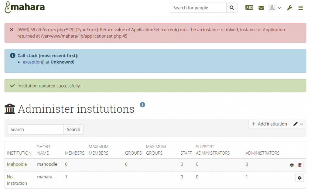 [WAR] d2 (lib/errors.php:529) [TypeError]: Return value of ApplicationSet::current() must be an instance of mixed, instance of Application returned at /var/www/mahara/docroot/lib/applicationset.php:45Call stack (most recent first):
