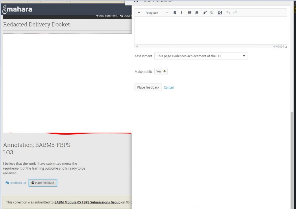 however if i dont use the preview option and open the Submission link i can use the place feedback here and it works. It appears to be entierly localised to the "preview" feature in mahara which seems to be totally broken.