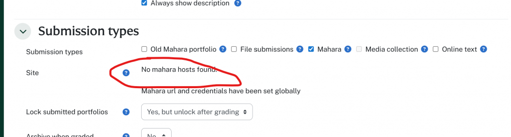 In all 3 cases the connection from Moodle to Mahara no longer works and the assignment page on Moodle displays the following: